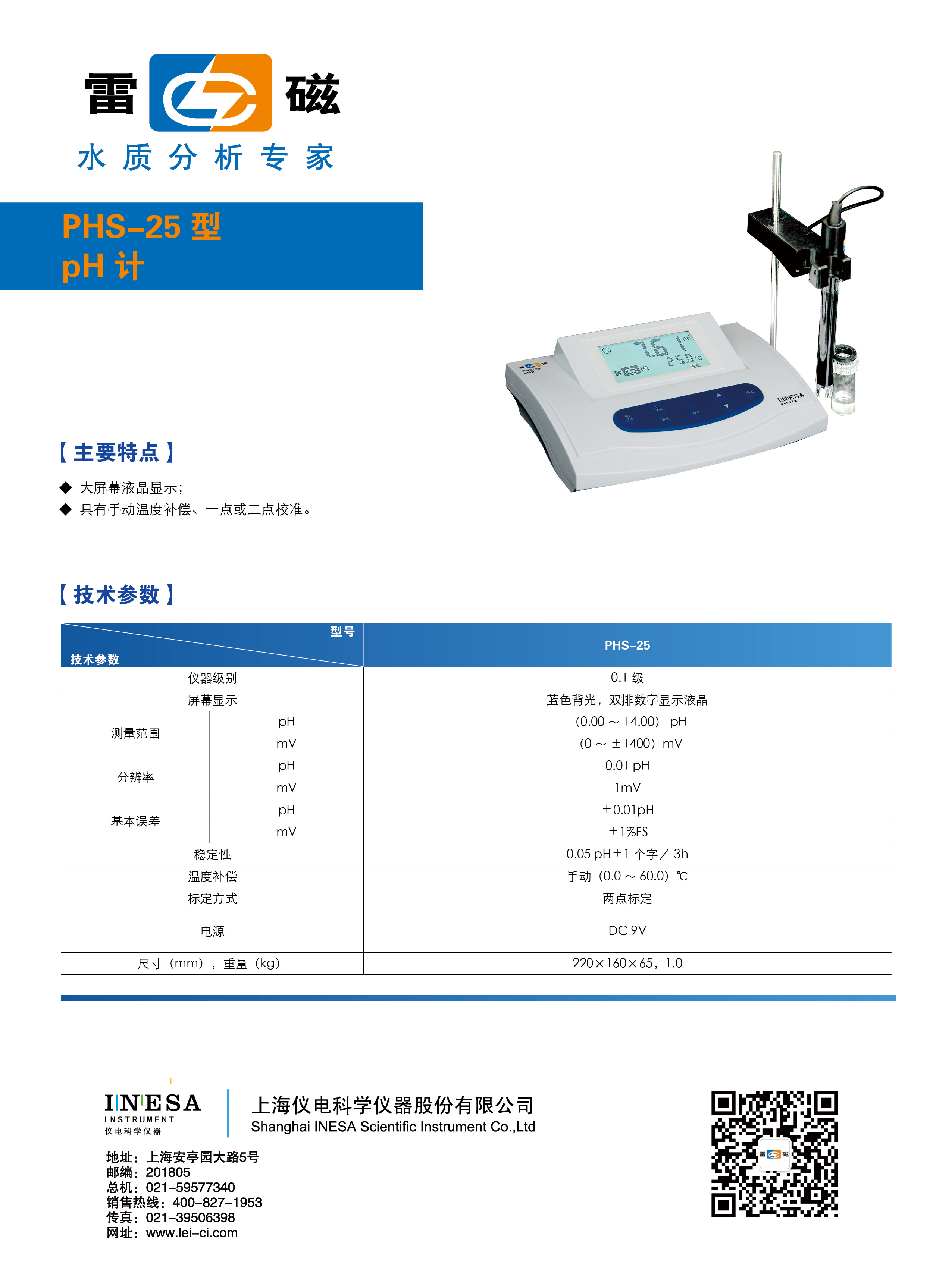 上海雷磁 實驗室PH計 PHS-3E