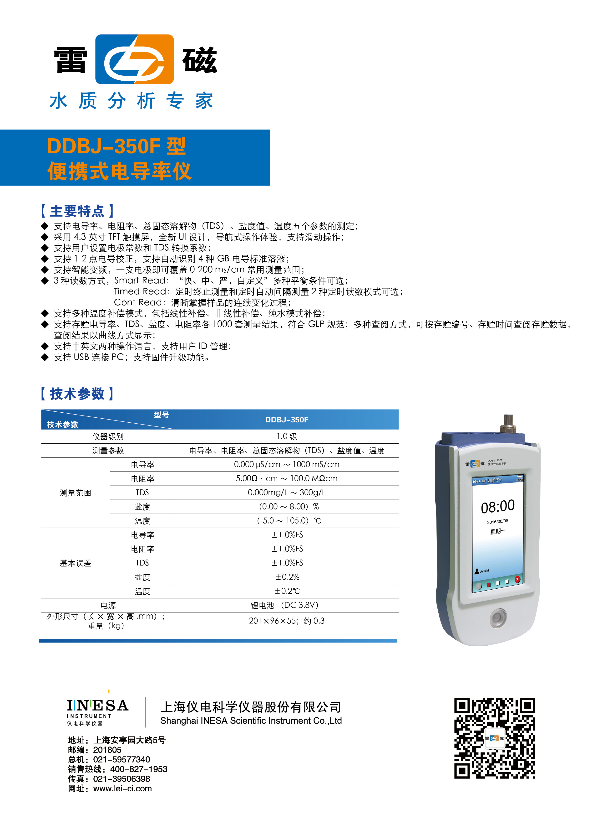 ※支持電導率、電阻率、總固態溶解物(TDS)、鹽度值、溫度五個參數的測定;