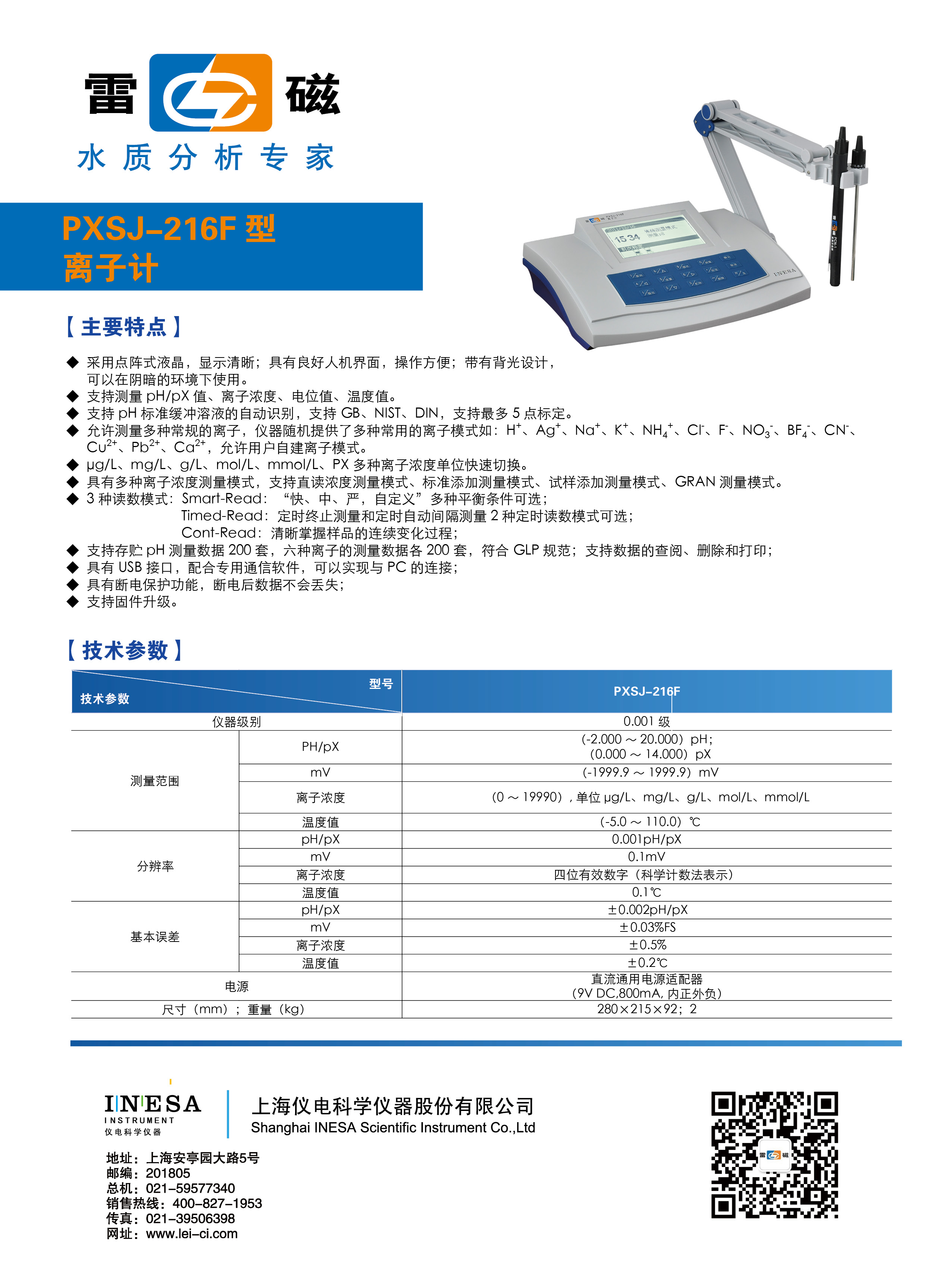 分辨率 | pH/pX | 0.001 pH/pX |