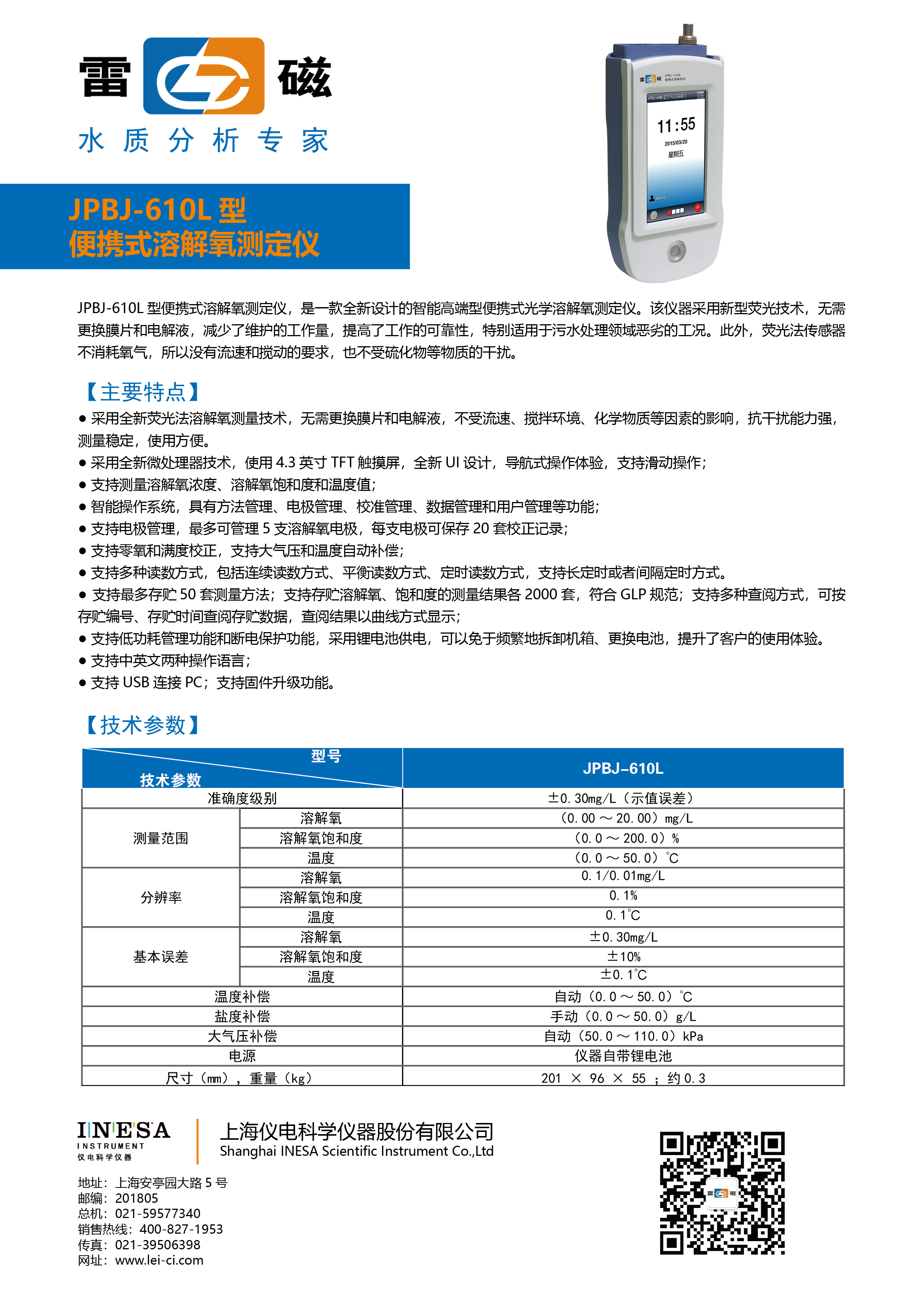 采用新型材料PC面板,輕觸數字式按鍵,可靠耐用;支持自動溫度補償,自動識別5種緩沖溶液,支持1-3點校準;支持USB連接PC、串口打印機;允許打印輸出測量結果。