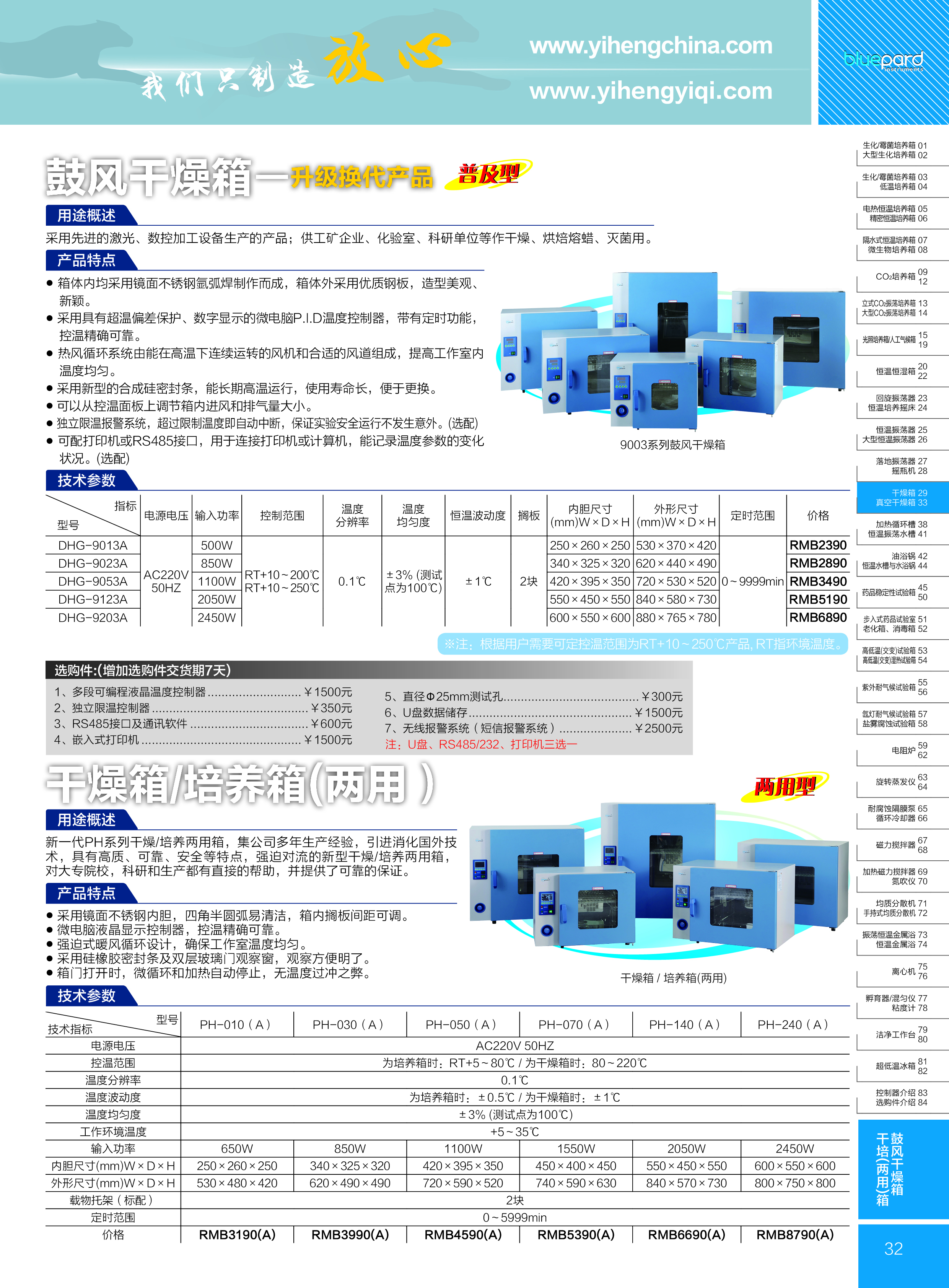 容積207L,控溫范圍室溫+5℃-200℃,溫度波動度±0.2℃;超溫聲光報警并自動切斷加熱電源;采用微電腦智能P.I.D.控制器;內(nèi)置隔板可自動調(diào)節(jié);擱板支架可自由裝卸