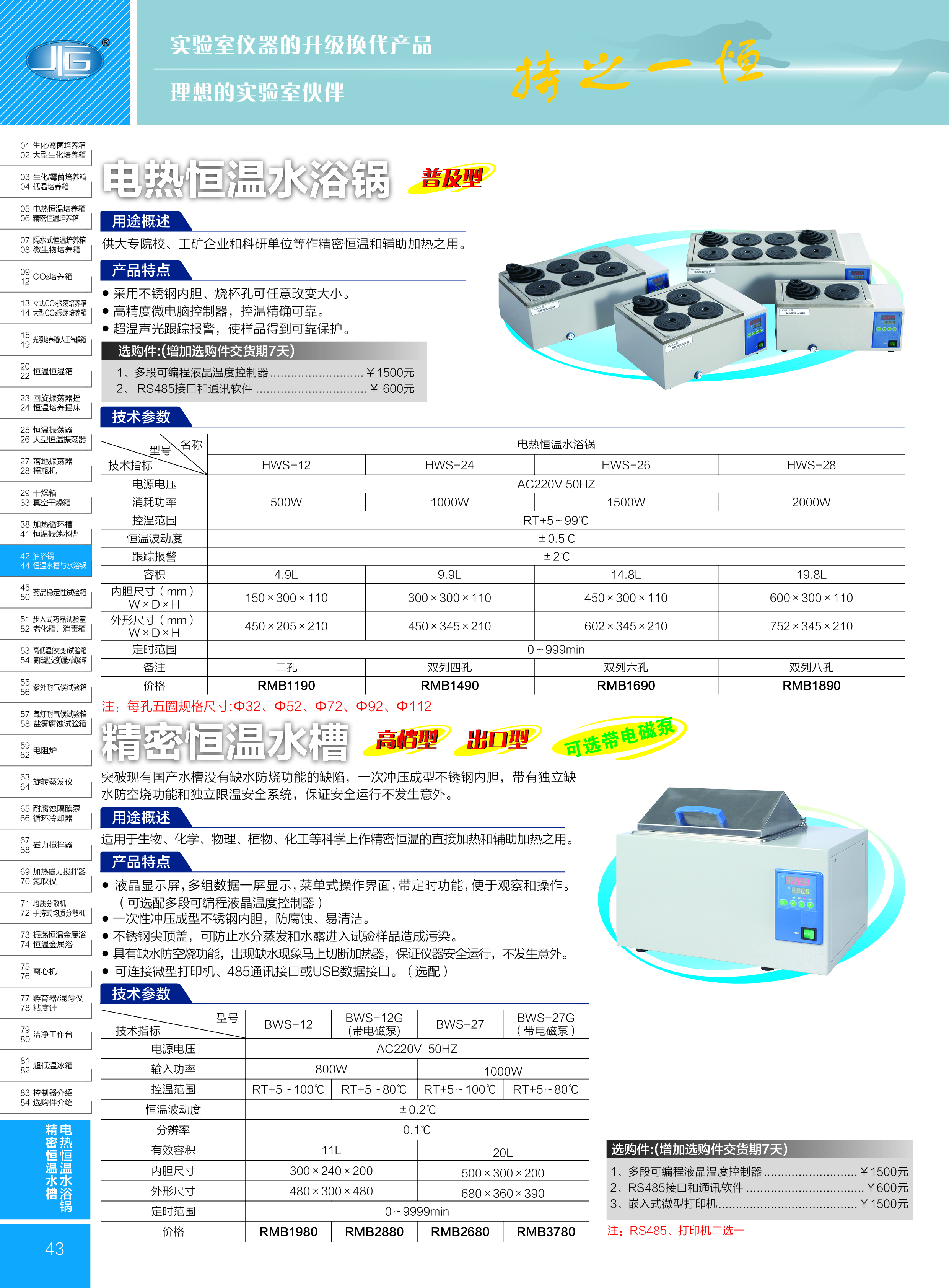 新推出的BWS系列水槽/水浴鍋兩用槽,集公司多年在水槽與水浴鍋領域研發與生產的成功經驗, 通過不斷潛心研究, 突破現有國產水槽與水浴鍋沒有缺水防燒功能的缺陷。BWS系列與一般水槽、水浴鍋相比具有以下特點:集水槽與水浴鍋為一體,一槽兩用,一次沖壓成型不銹鋼內膽,并帶有缺水防空燒功能和獨立限溫安全系統,保證安全運行不發生意外。可廣泛使用與計量、生命科學、制藥、醫學、化工等領域。