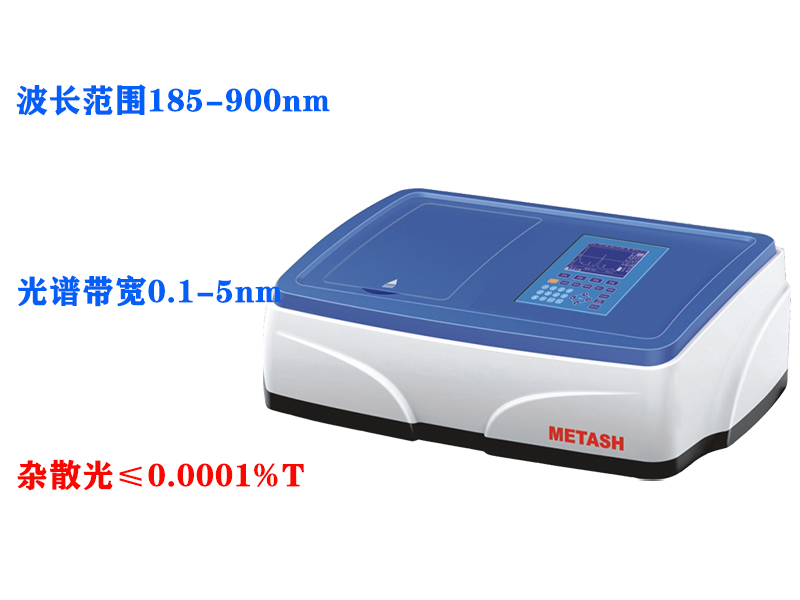上海元析V-5100H型可見分光光度計波長范圍320-1000nm,光譜帶寬 4nm或2nm可選,雜散光≤0.1%T。V-5100H型可見分光光度計,可存儲200條標準曲線,根據編號可隨意調用;測量和存儲的數據具有斷電保持功能;波長自動校準、自動設定、偏差自我修復