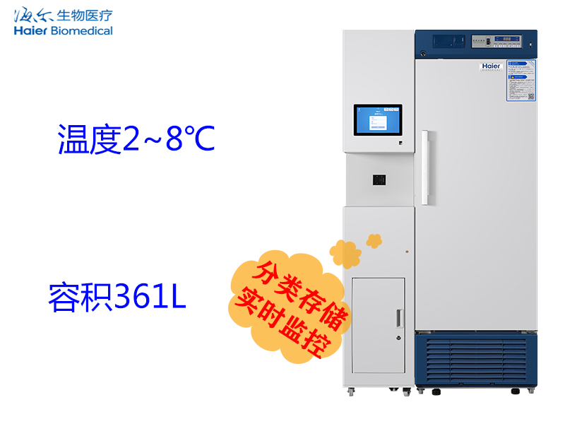 海爾2-8℃醫用冷藏箱(疫苗保存箱) HYC-361,容積361L,分類存儲,減少存取差錯;數據信息流,實時監 控管理高效;電子碼監管,極速自動盤點;管理快速精準,節省人力