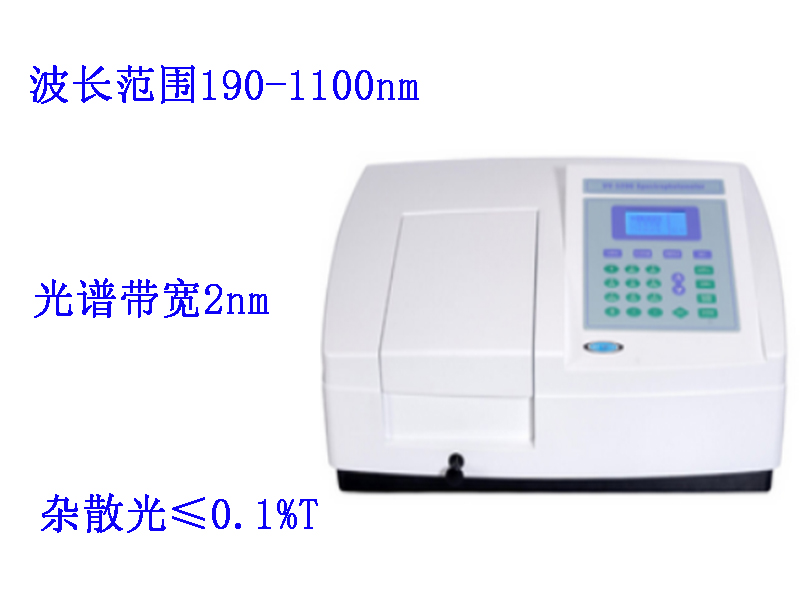上海元析V-5800(PC)型可見分光光度計波長范圍320-1100nm,光譜帶寬2nm,雜散光≤0.05%T;V-5800(PC)型可見分光光度計雙光束比例監測光學系統,波長自動校準、自動設定、偏差自我修復,能直接建立標準曲線,V-5800PC型標配元析公司的掃描軟件可直接完成光度測量、定量測試、定性測試、動力學測試、多波長測試、DNA/蛋白質測試及數據圖譜的處理。