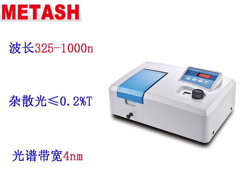 上海元析V-5100H型可見分光光度計波長范圍320-1000nm,光譜帶寬 4nm或2nm可選,雜散光≤0.1%T。V-5100H型可見分光光度計,可存儲200條標準曲線,根據編號可隨意調用;測量和存儲的數據具有斷電保持功能;波長自動校準、自動設定、偏差自我修復